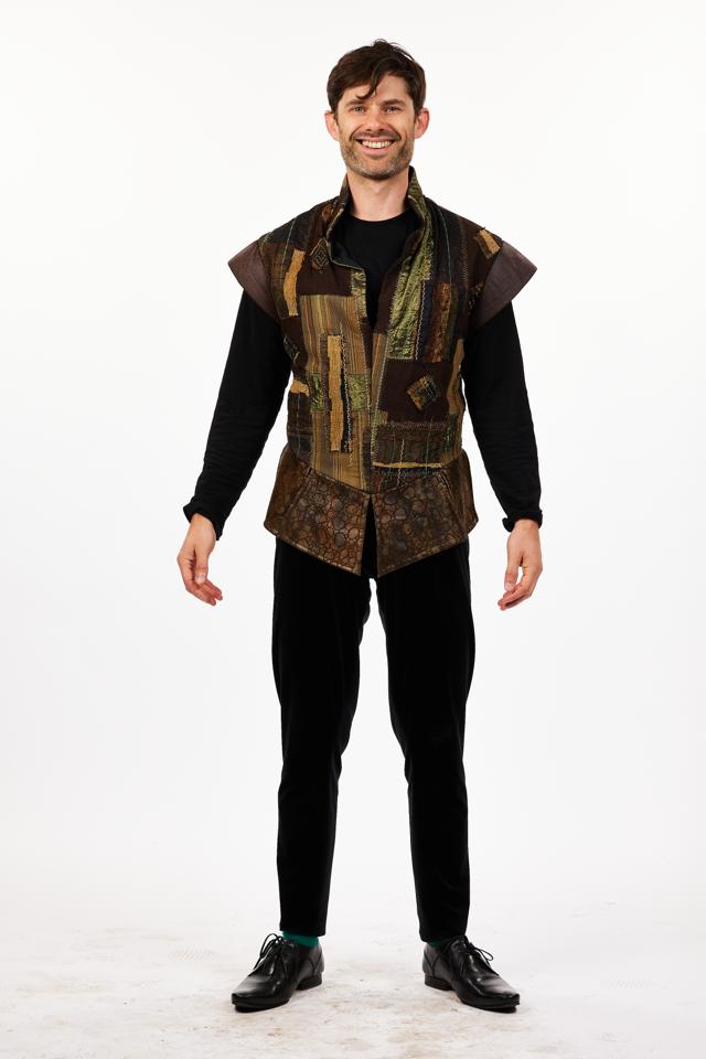 Men's rustic villager costume, doublet, shirt and trousers with matching hat
