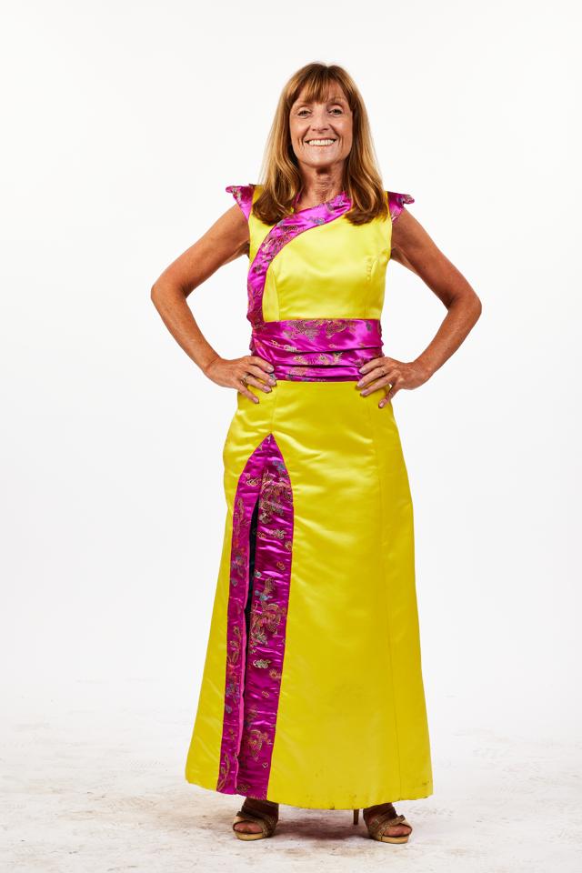 Men's Regency style Prince Charming suit in gold with purple knickerbockers