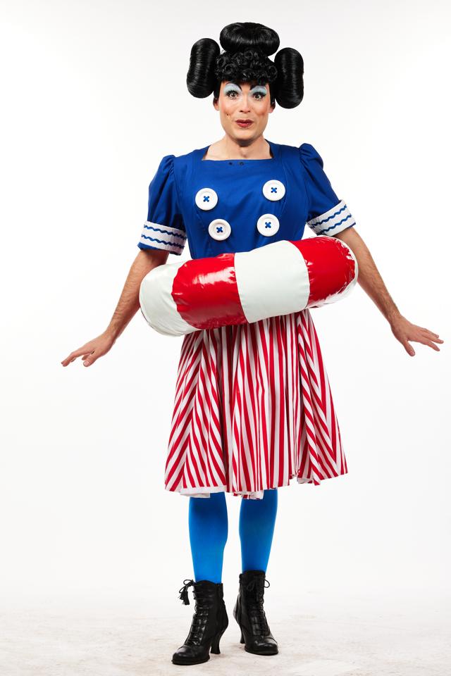 Men's comedic sailor costume, jacket, waistcoat and trousers, blue, red, white