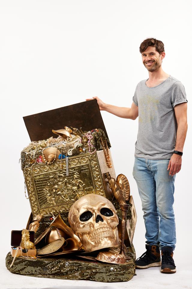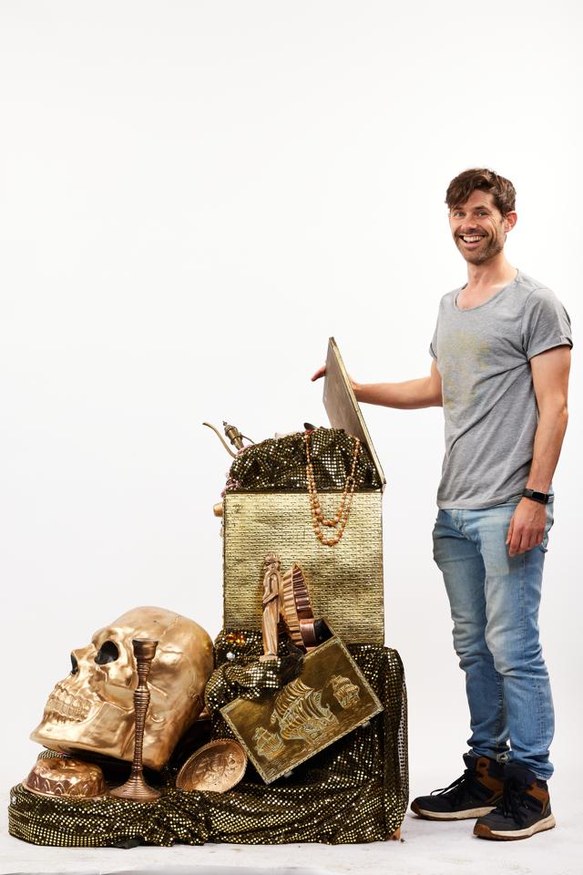Whatever your treasure haul needs to be, from pirate booty to jewels in a cave of wonders this impressive statement prop is bound to impress your audiences. This lovely loot is a truck with casters, a pile of golden spoils including a giant golden skull is the base leading up to a golden treasure chest overflowing with jewels and other fantastical and no doubt ill gotten gains. 100cm wide, 105cm deep, 138cm height