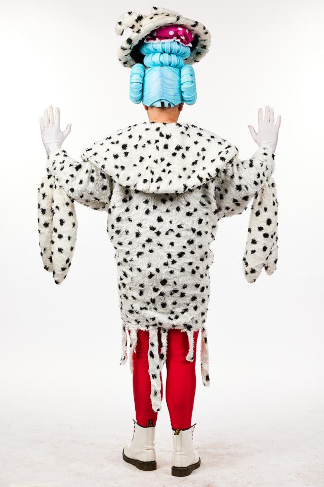 Skirt and bat wing style top with detachable stoles hanging from the sleeves. Fits up to 39" waist.