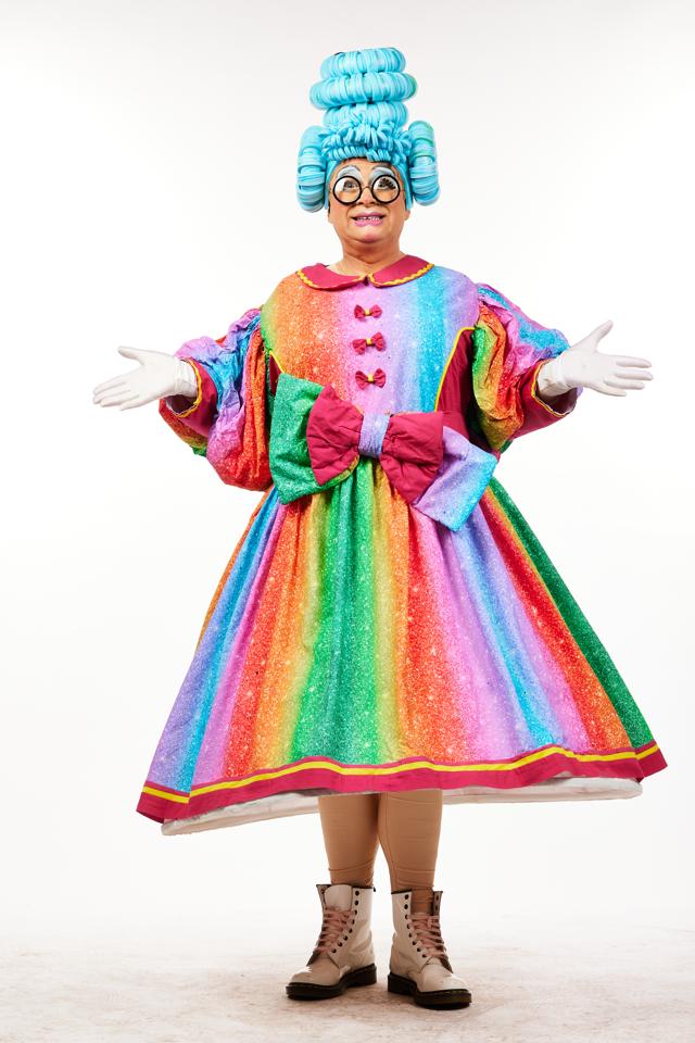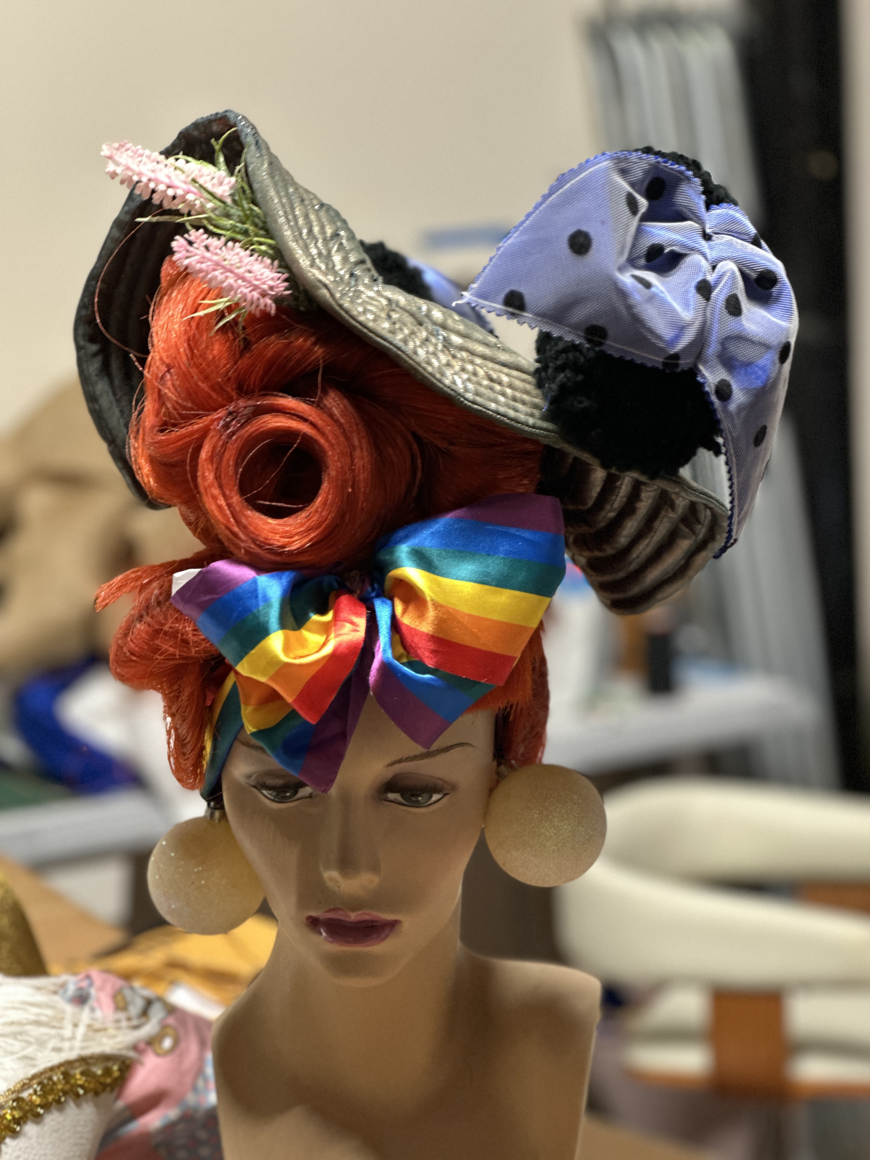 Cow pat wig included featuring bauble earrings and a wobbly fly.