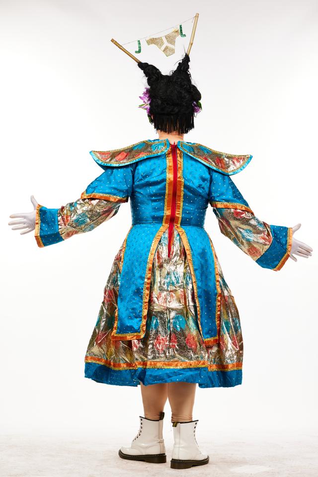 aladdin,chinese,oriental,blue ,dress,pointy shoulder pads,gold,gold dots