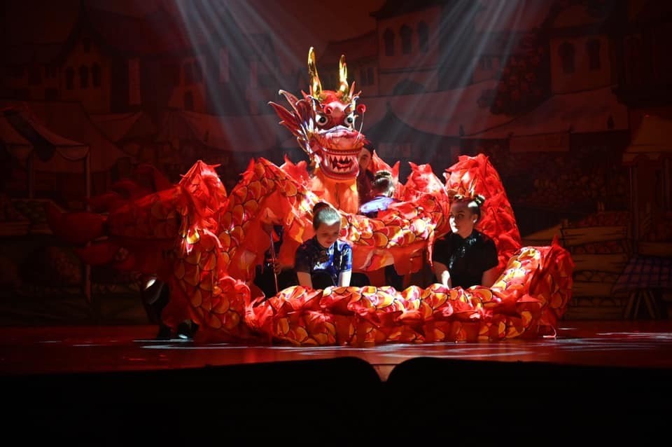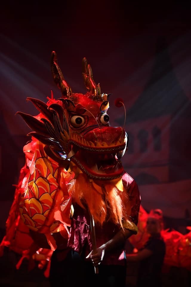 Authentic Chinese Dragon, stretches to around 35ft long from head to end of tail, comes with light up eyes and poles for operators